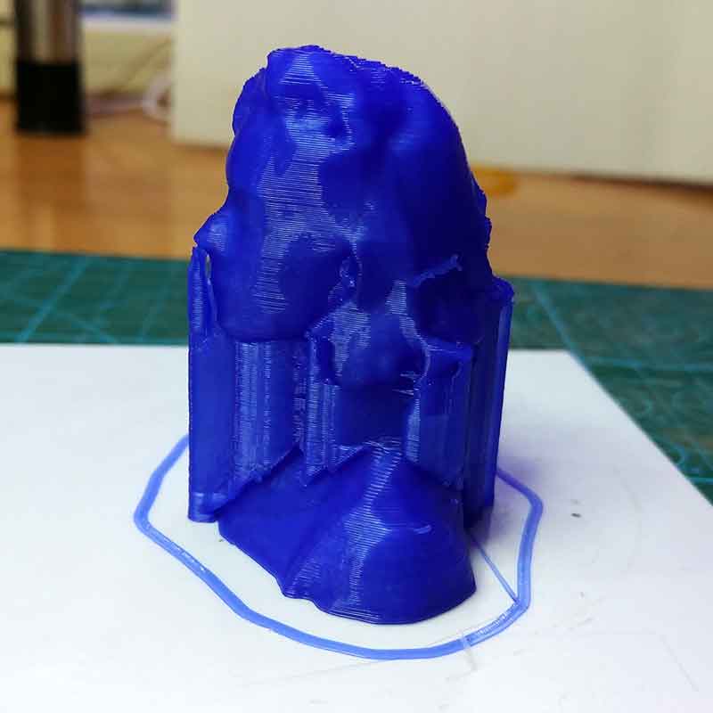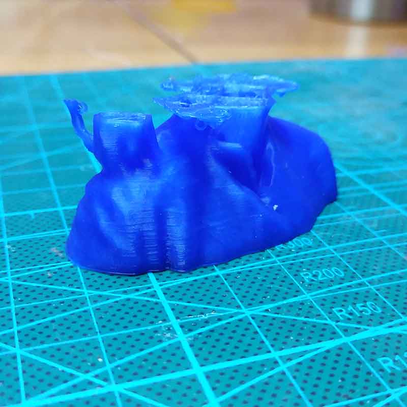 After this first attempt, I modified the CURA file and added supports to the model. And this was the final outcome: