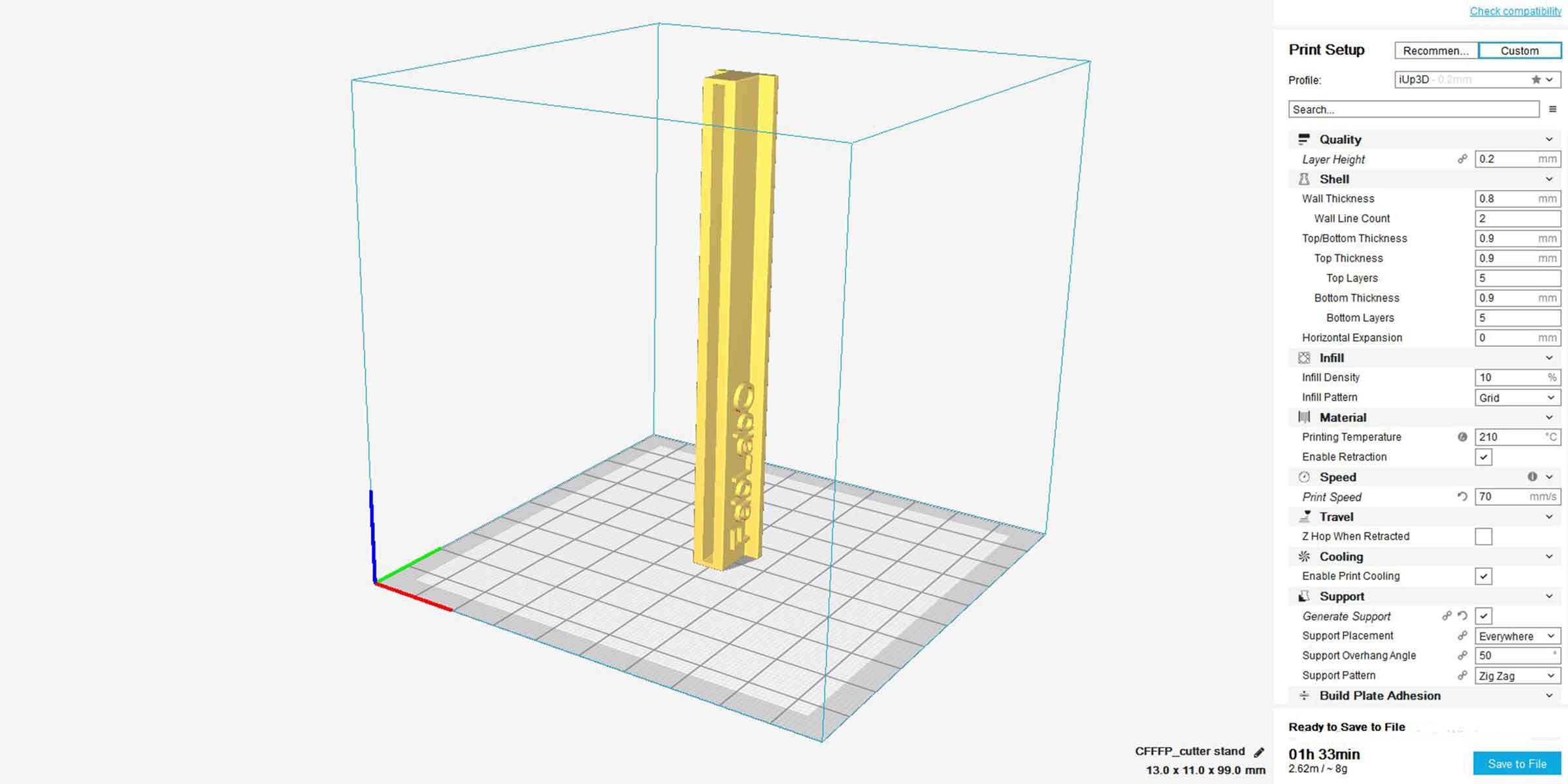 To create the GCODE I used CURA Ultimaker Slicer software.