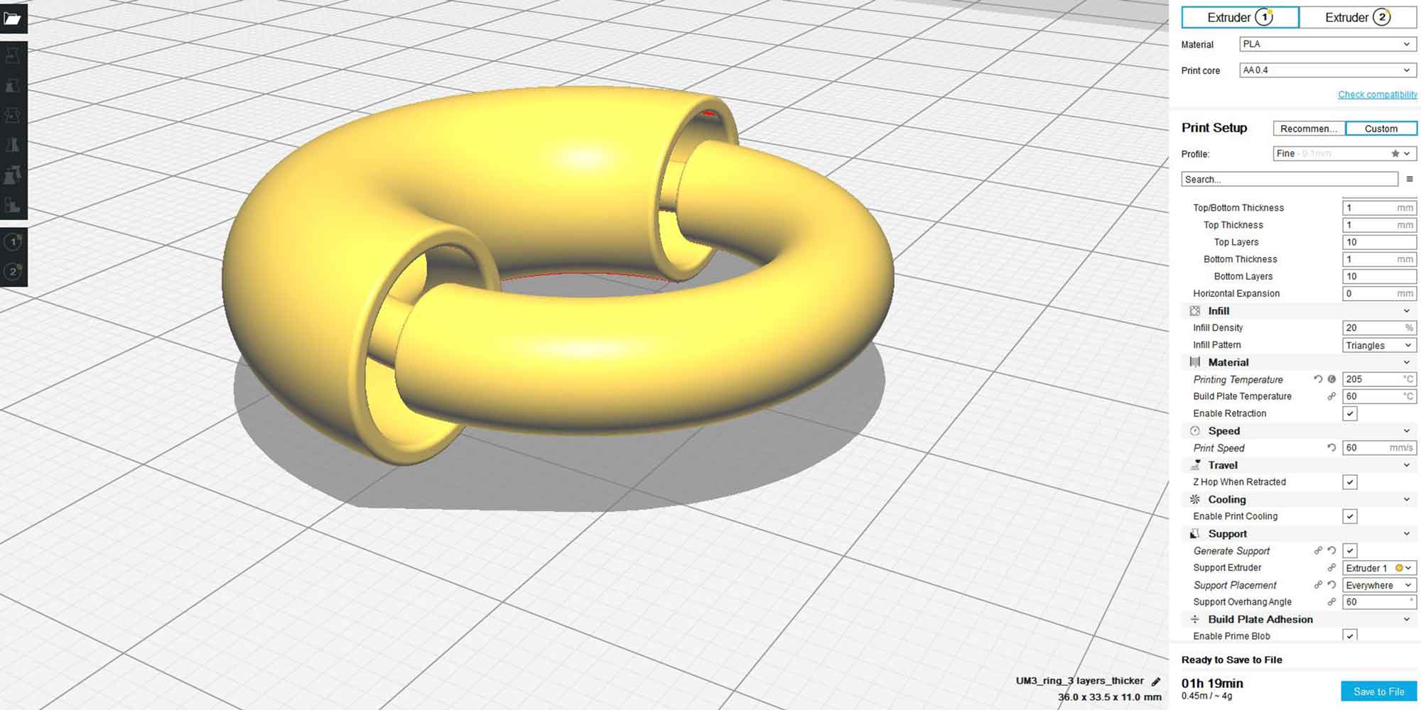 For this test I decided to do a simple shape, which is a ring that has layers 3 layers.