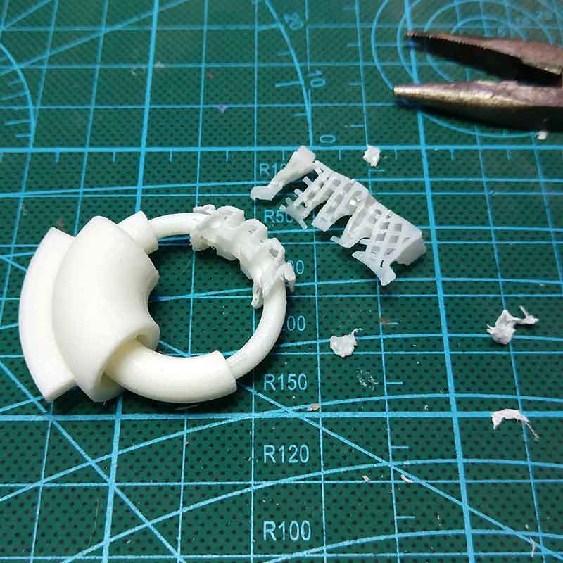 Once the model was printed out I removed manually the support that was built between the overhangs.