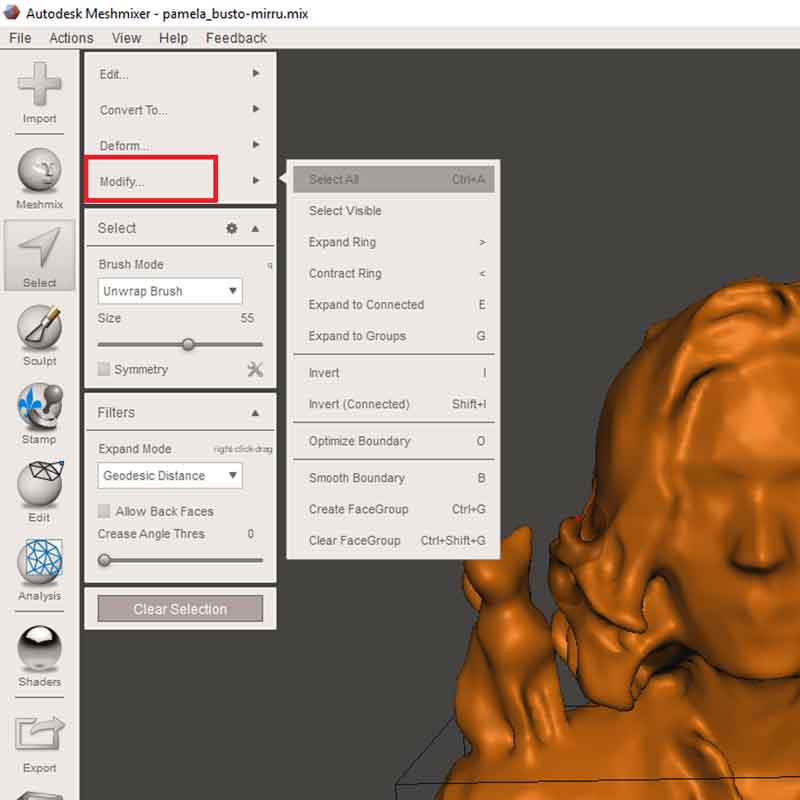 1_Open your model, go to SELECT, click anywhere on your model then go to MODIFY>SELECT ALL