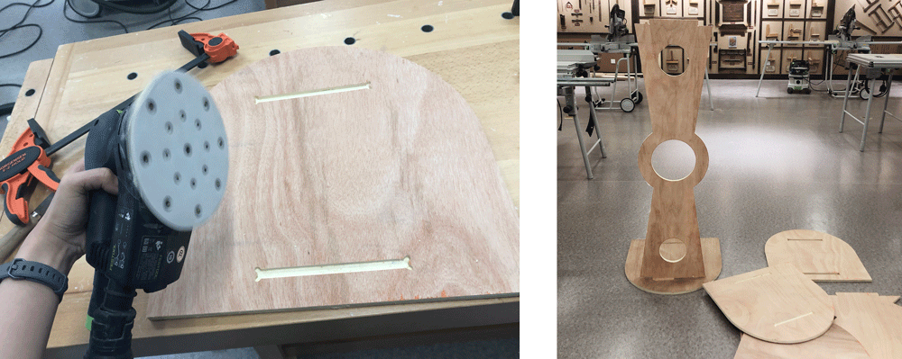 After cutting with the machine, I took the pieces to the woodshop nextdoor and sanded my pieces :D I tested the slots as well. The pieces fit to each other well.