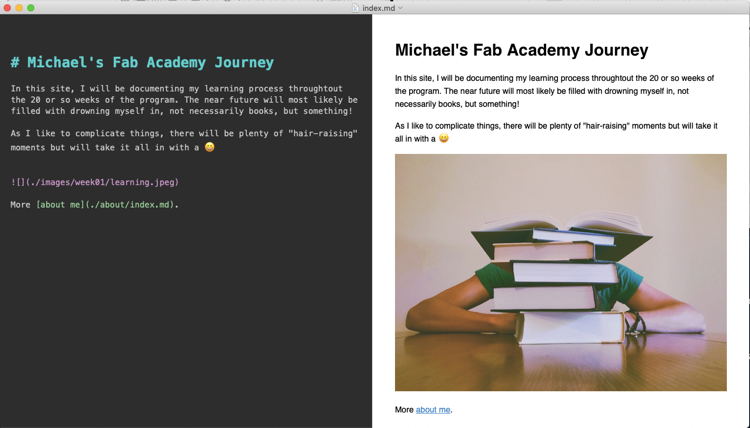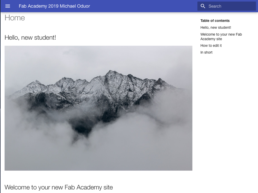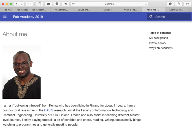 I gave myself extra work this week by trying two different static site generators in addition to some Bootstrap frontend frameworks. I am familiar with static site generators and have previously used Pelican which I initially wanted to use for my Fab Academy site, but then I thought why not try the recommended [MkDocs] (https://www.mkdocs.org) that had a ready-to-use template already uploaded on Fab Academy’s gitlab. So I went through a process of installing both of them and giving them a try before deciding.