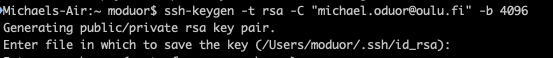 ssh-keygen -t rsa -b 4096 -C "<<michael.oduor@oulu.fi>>"