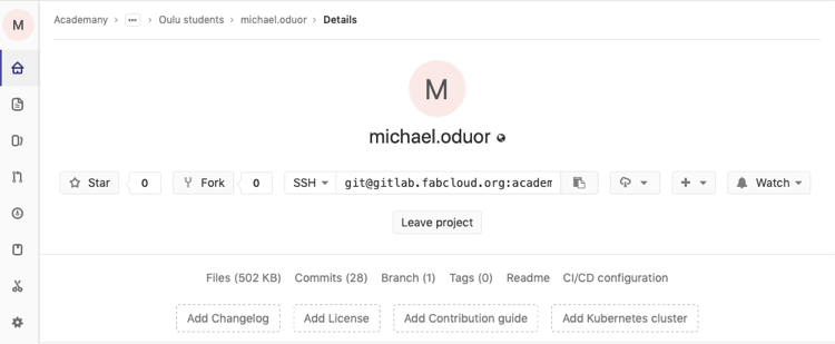 When this was done, I made a local copy of the remote repository (a copy of my project from the Fab Academy gitlab account) using