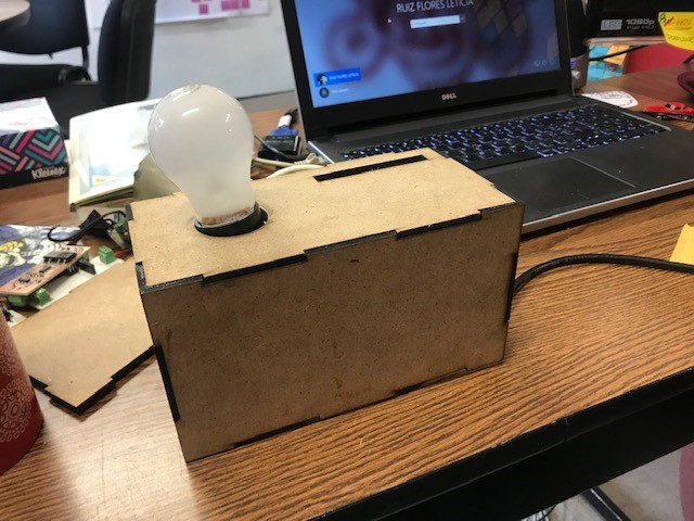 - Since it is aimed at kids, the rectangle box makes it more stable, I'm still defining if the bulb should have a lamp shade or not, at this point I rather have a vintage light bulb.