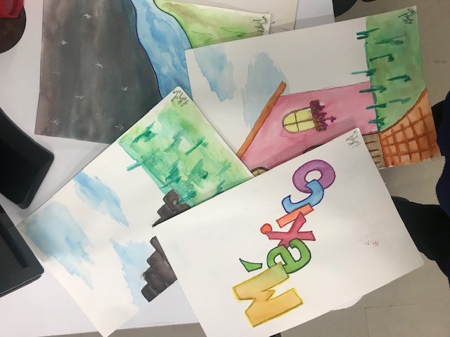 - Draw the scenarios and color them, as I've mentioned I chose to include traditional watercolor techniques to create the scenarios keeping up with mixing digital and real world.