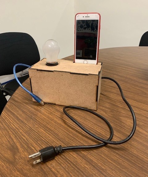 - For the base I decided to make a basic rectangle shape box, with the cut out for the bulb and spec for the cell phone to be held.