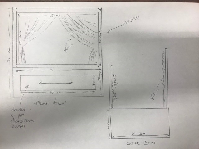 The scenario will be big enough to have a grid where the characters will be moved automatically. Teh front will have the look and feel of an old play theatre with a drawer on the base to put away the characters once play time is over.
