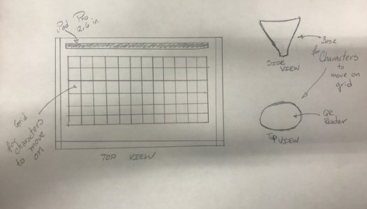 Scenario simulating a theatre, with a grid for characters to be able to move within certain parameters, as a background scenrario there will be an app that will control the characters movement and will tell a story.