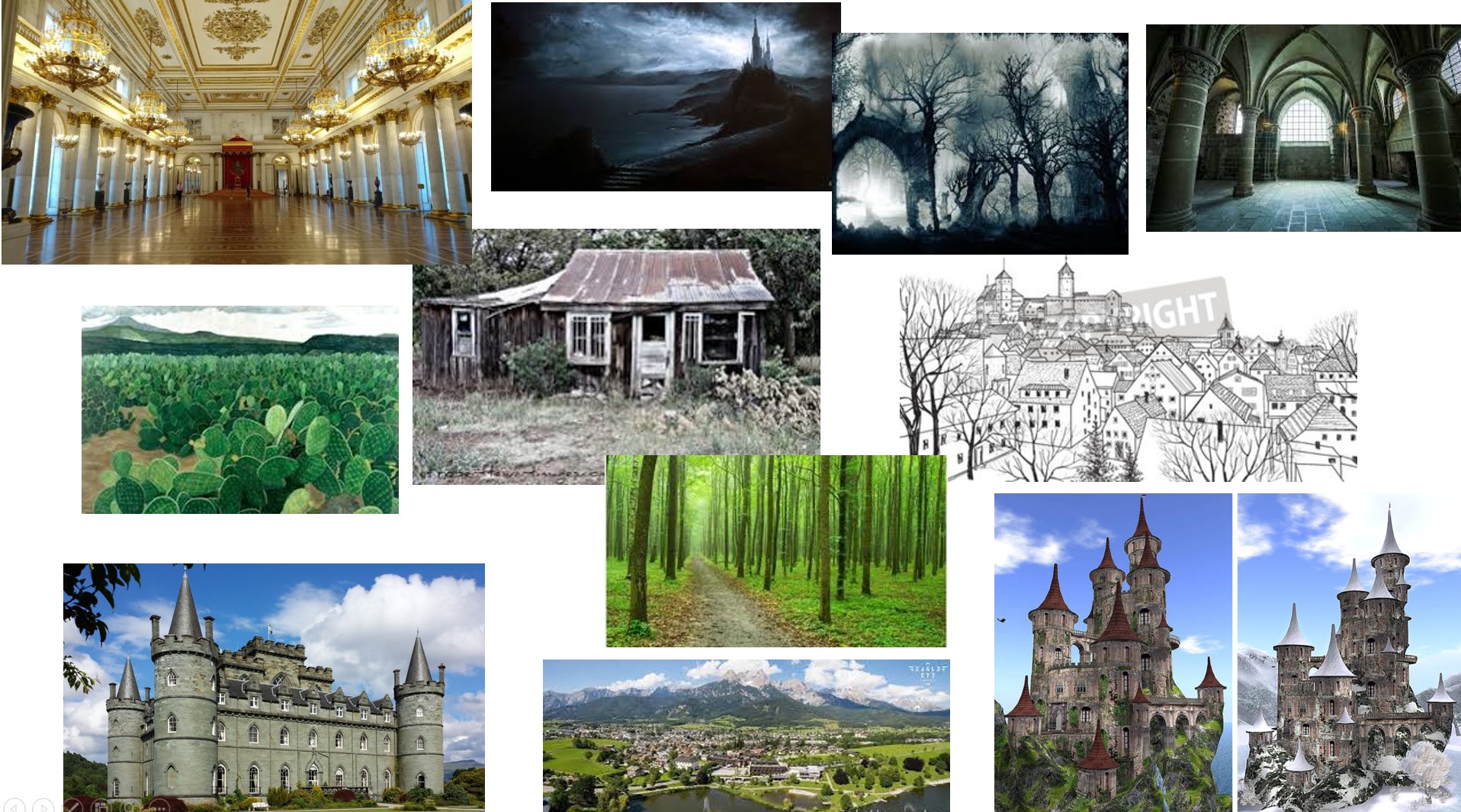 - In that story, which scenarios pop to mind? A forest? a castle? the throne room? a cottage?