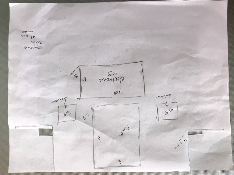 - BEfore designing anything in CAD we decided to create a very low tech model to see if everything was accesible, in the process we found out it was much more complex to access electronics from the back adn decided to change the final model to have all electronic components on top, making easier to breathe and accesible to be replaced if needed.