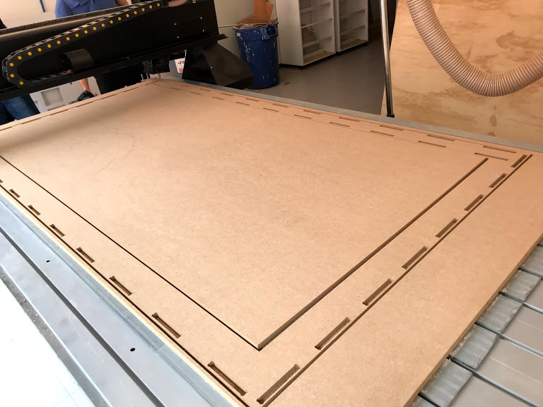 Aside from participating in the integration and testing processes with my team mates, my main assignment was to create the frame for our final piece. The first problem was that we decided on a very large scale, it ended up being 2 x 1 square meters. We decided on 15 inch MDF and it was really heavy to move, if you plan on building a new one, scale it down.