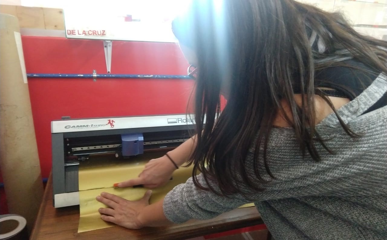 - Once it finishes you'll need to adjust the roll so it allows you to cut clean your piece and waste as little material as possible. Use an exacto knife to achieve a clean cut.