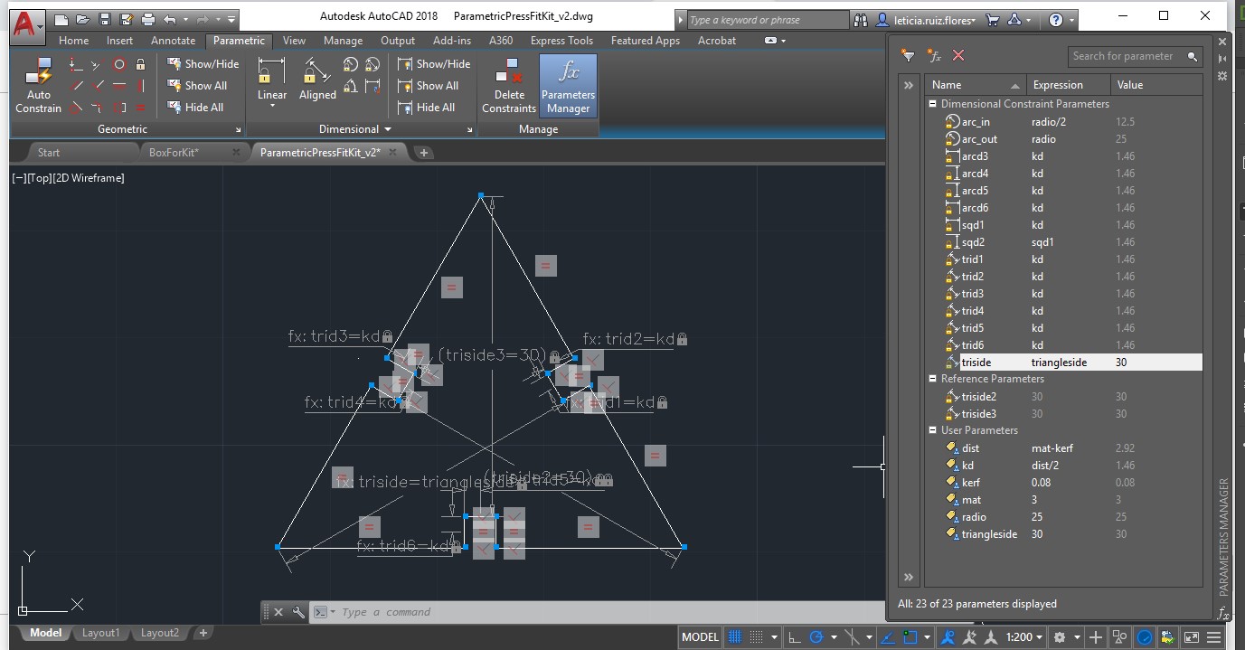 - Once you have one figure finished edit your dimensional constraint parameters, otherwise you'll end up with parameters named d1, d2 ... dn. Good luck identifying them