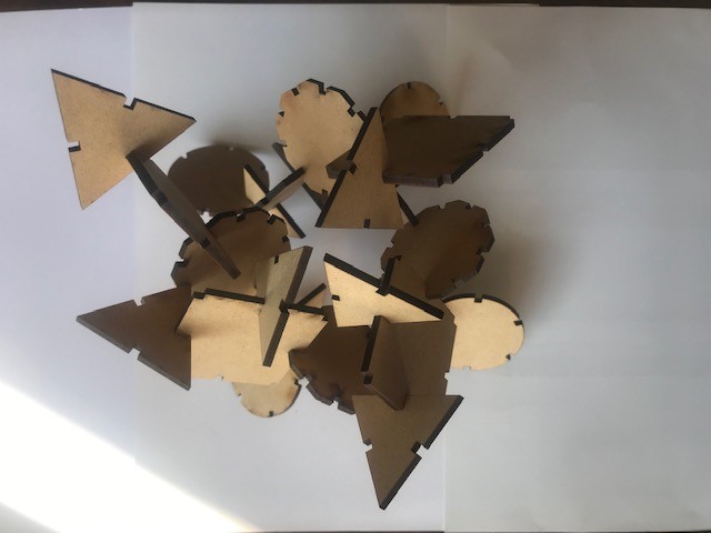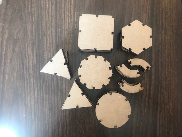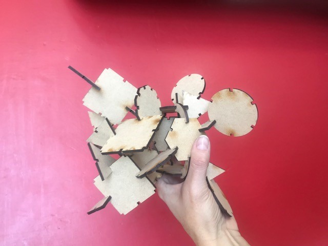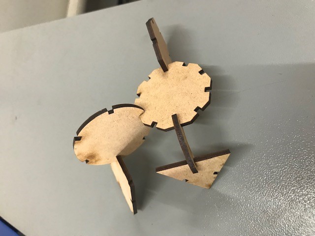 Cut something and document a parametric press-fit construction kit, accounting for the lasercutter kerf, which can be assembled in multiple ways