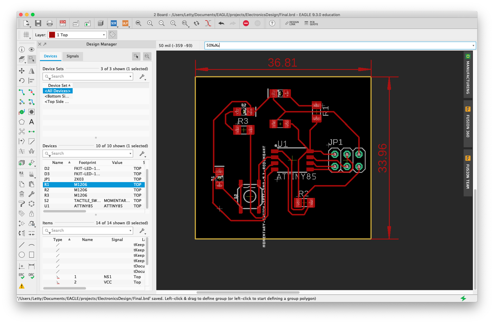 - After engraving and cutting the next process is solding the components following your schematics to the PCB