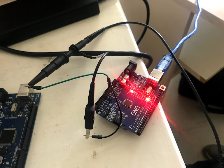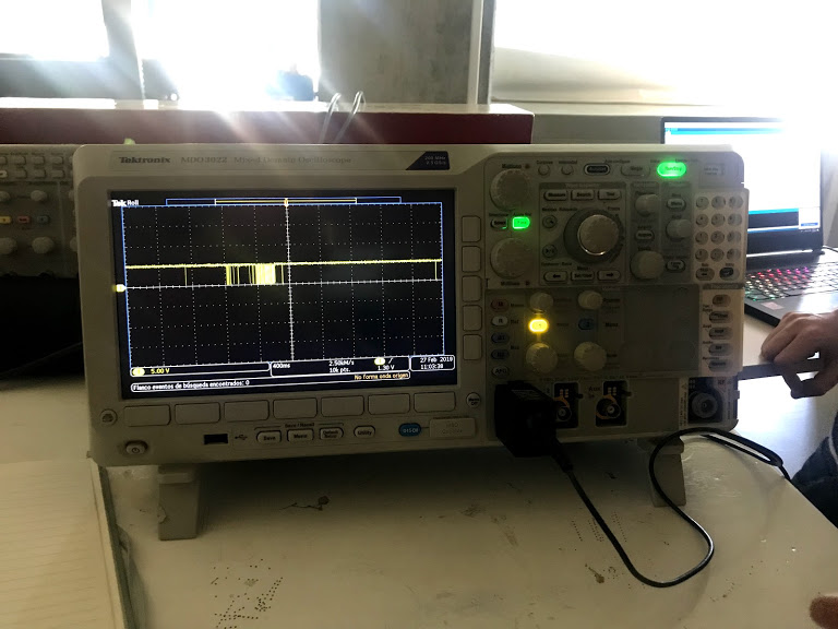 Use the test equipment in your lab to observe the operation of a microcontroller circuit board.