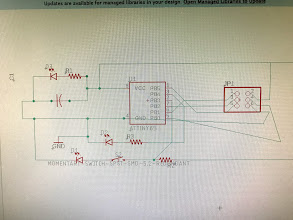 Redraw the echo hello-world board, add (at least) a button and LED (with current-limiting resistor) check the design rules, make it, and test it. Extra credit: simulate its operation
