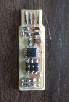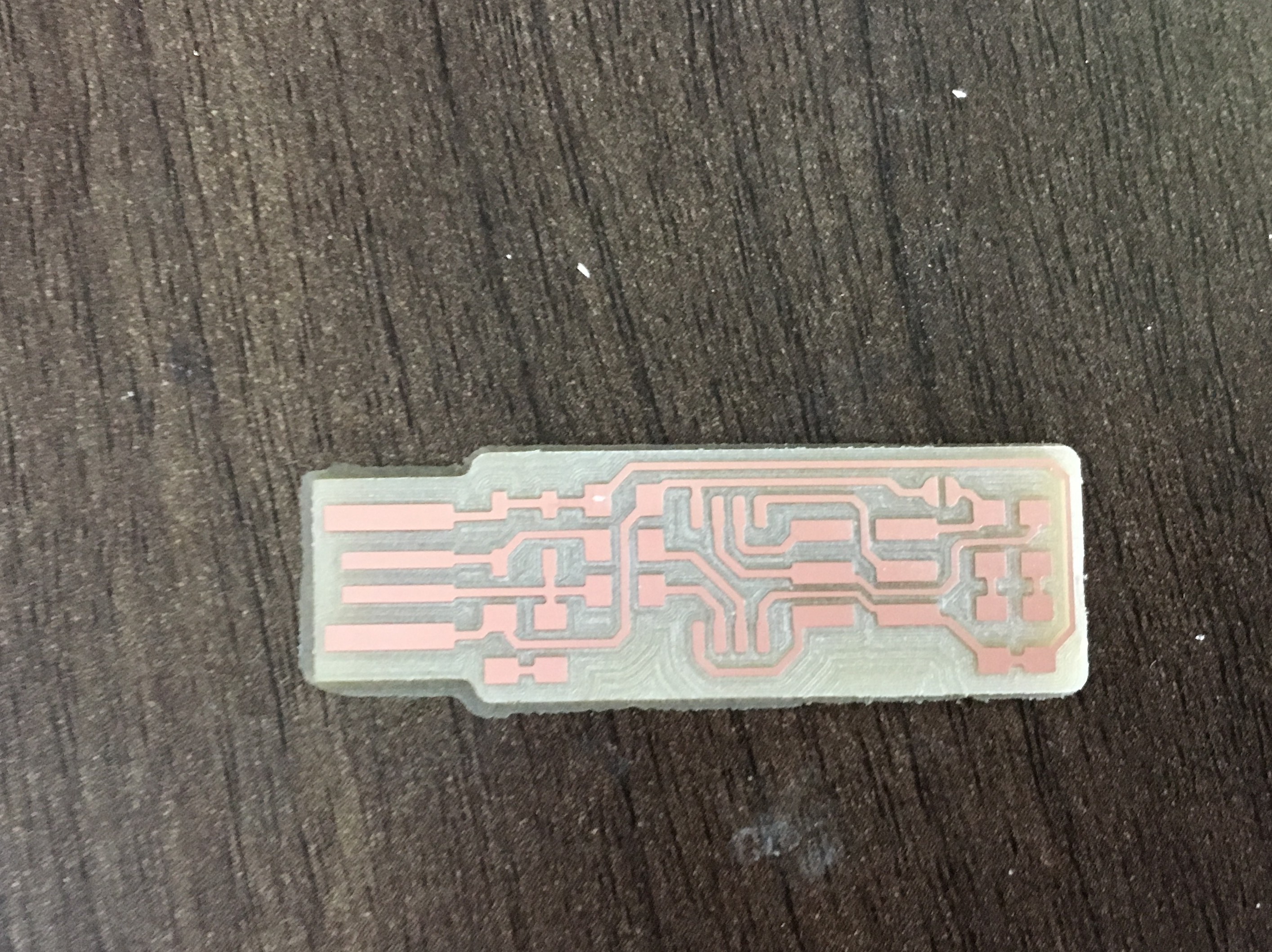 I have some theoritical information on electronics that I acquired in my 1st year of engineering. I don't know how they work altough I have an idea what some of the component do.I do find it very interesting as I have a lot of projects that could benefit from some moving parts.I wrote down the start and end points (in mm) and started milling. Because milling just .1mm of copper the dust is minimal and the dustbuster was not nescessary all the time. Though we wanted to see what the machine was doing. So I downloaded Brian's usb tiny circuit based on ATtiny44 as suggested by professor Neil I tried to understand how the circuit works with that attiny lower speed micro controllers Then I Transfered the png in fabmodules.org in order to get .rml documents: