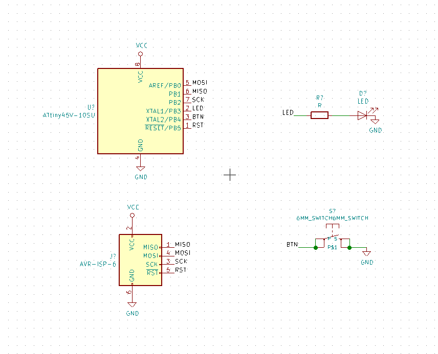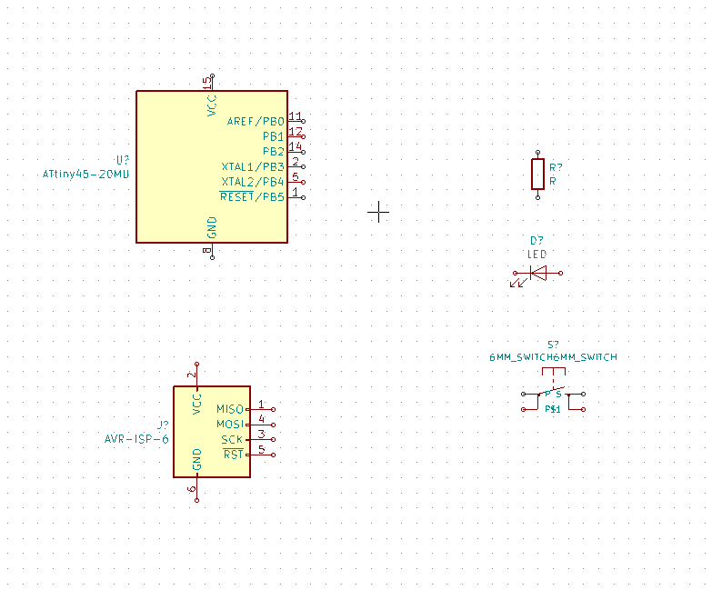 1x ATtiny45 / 2x 1Kohm resistors / 2x 499Kohm resistors / 2x 49Ohm resistors / 2x 3.3v Zener diodes / 1x red LED / 1x green LED / 1x 100 nF capacitor / 1x 2x3 pin header / As mentioned above I have some knowledge in soldering although the packages I used to solder are not SMD, The SMD packages are tiny and are soldered on the surface.,So I based my self on the details that are in Brian's link