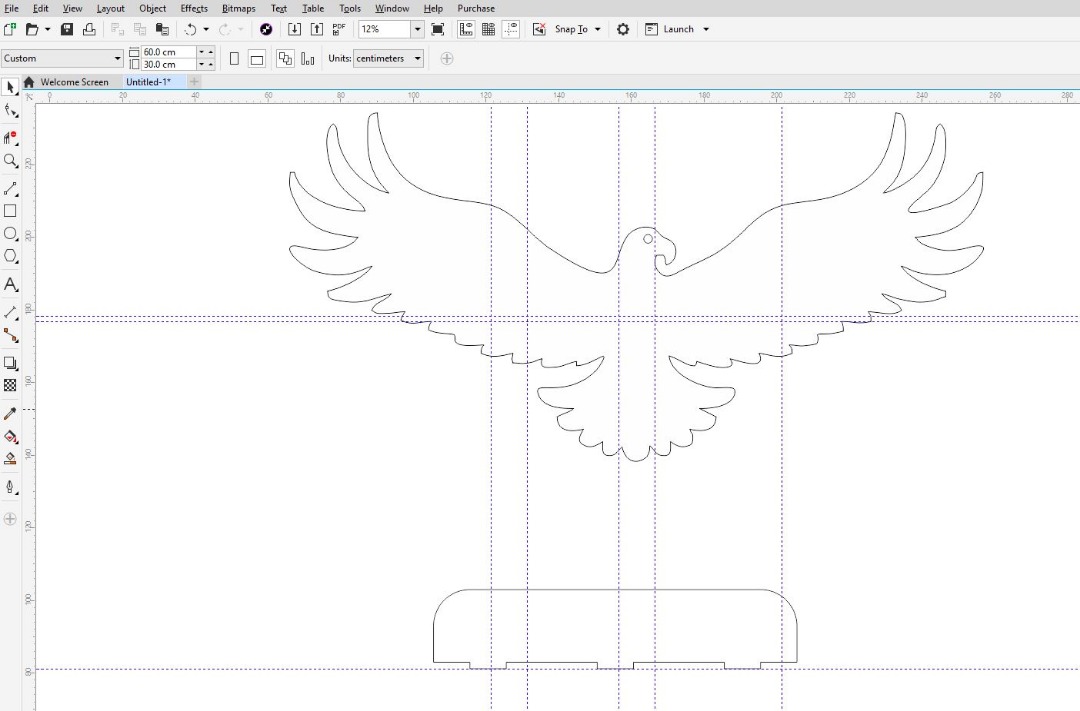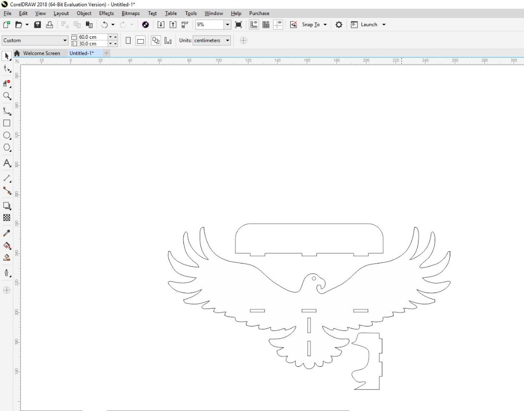 in this week i choose to design eagle shelf which will be used as decoration purpose and also become where you can hang some small decor I uploaded the files from Coreldraw , saved as dxf file so that Vcarve a software used by shopbot may understand the model that i designed in coreldraw.