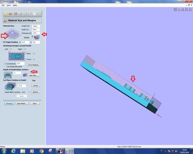 In this part is important to set the position of the origin and the depth to start creating the model. Greater is this measure, thicker the mold will come.