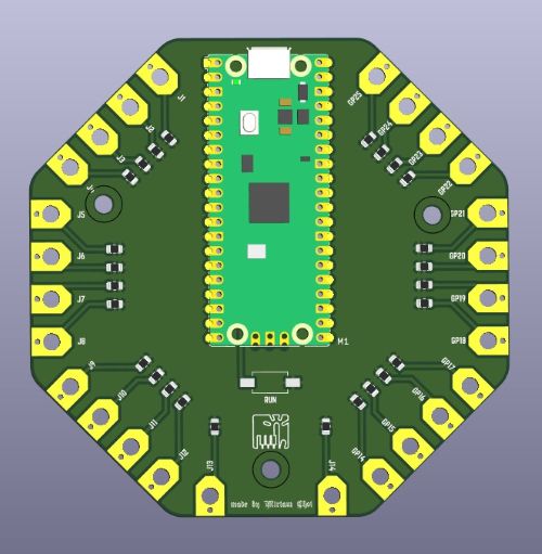 CAP MIDI is a development board that uses the Raspberry Pi Pico's capacitive-touch capability. The board can be used as a touch keyboard, a simple instrument, or another interactive input device that reacts to touch instead of mechanical switches.