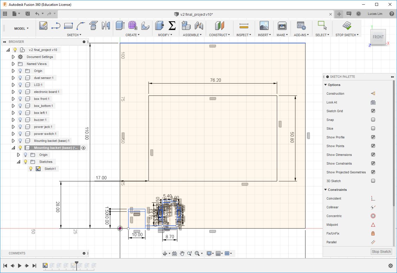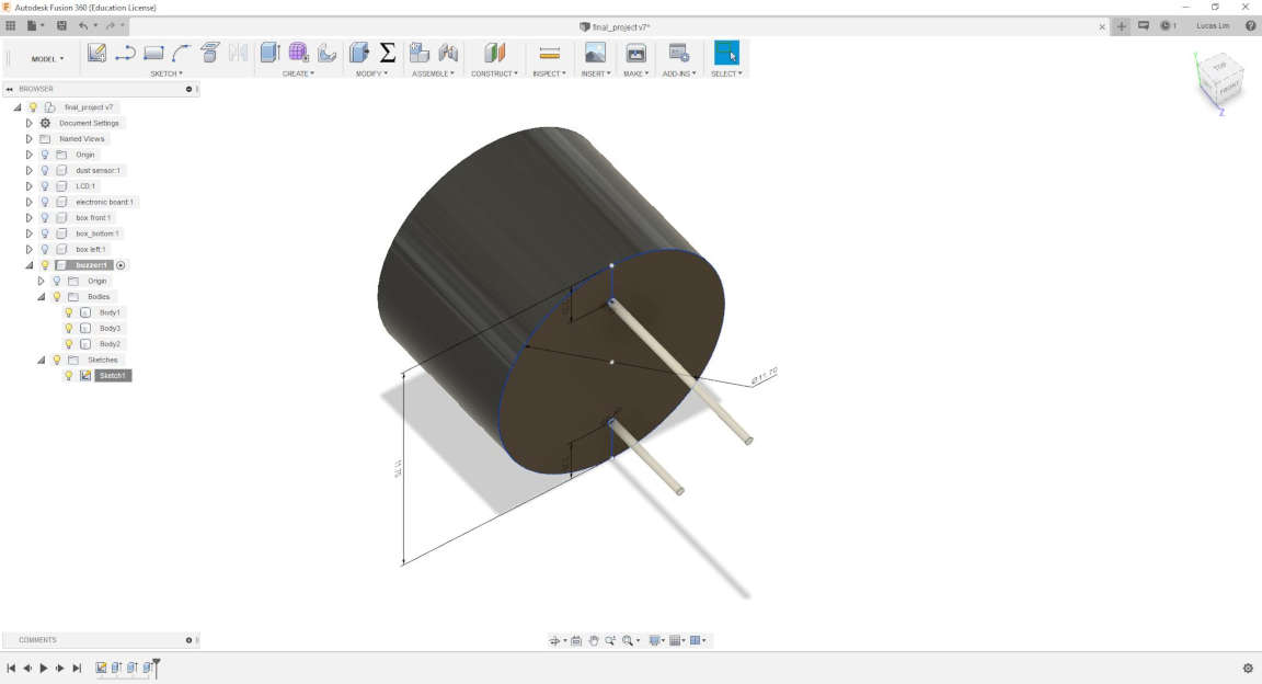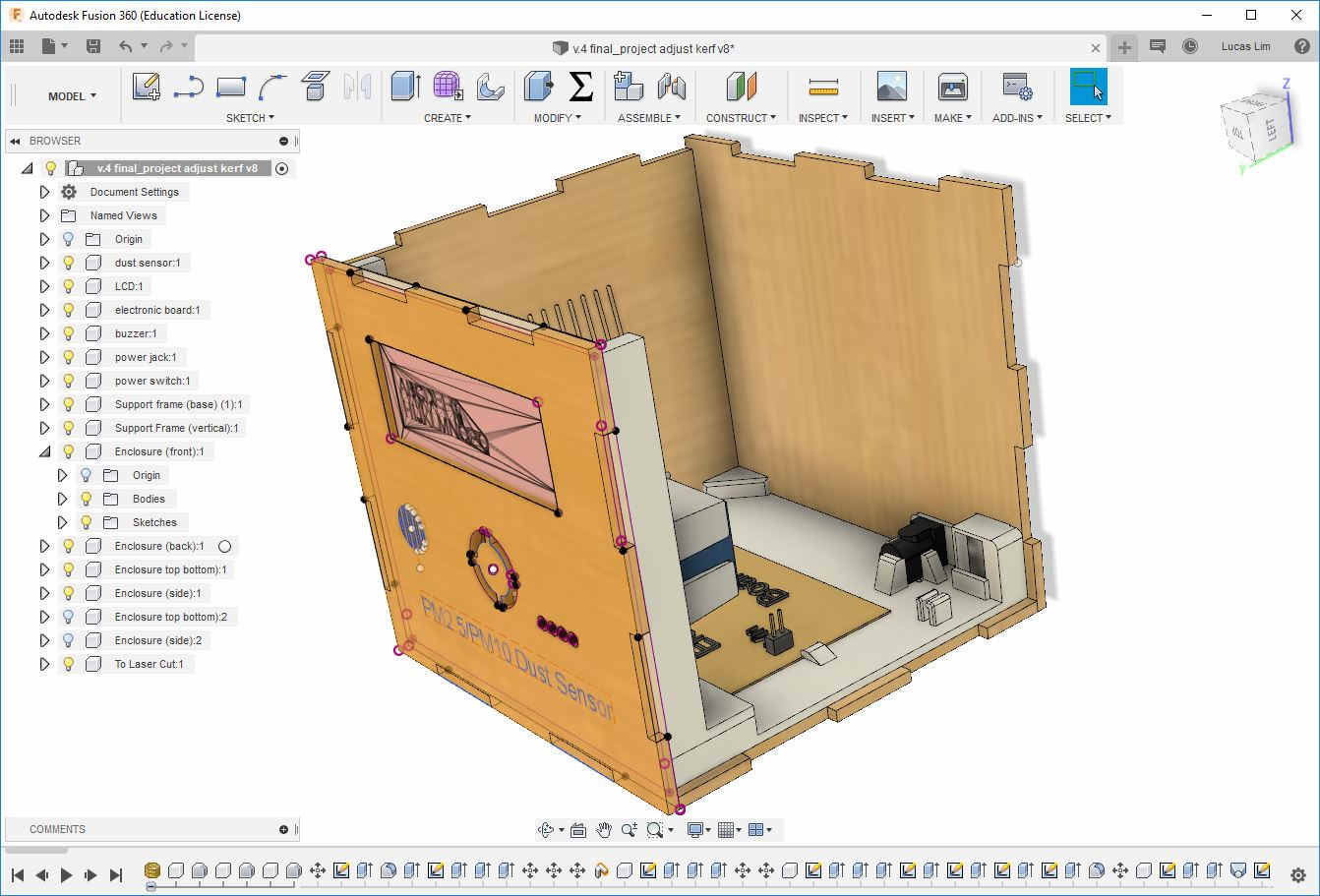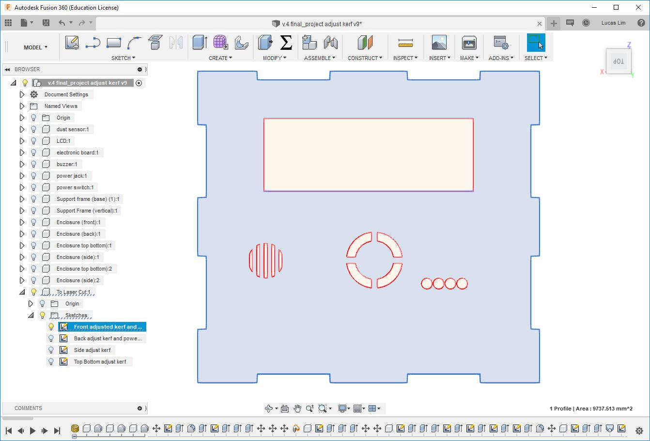 I had a rough idea and visualisation of my final project in week 1, but I only started to draw my design on 18 Apr 2019 (which is after week 13 - Applications and Implications week). It took some time for the components which I ordered online to arrive, like the dust sensor module, power switch, power jack, etc.