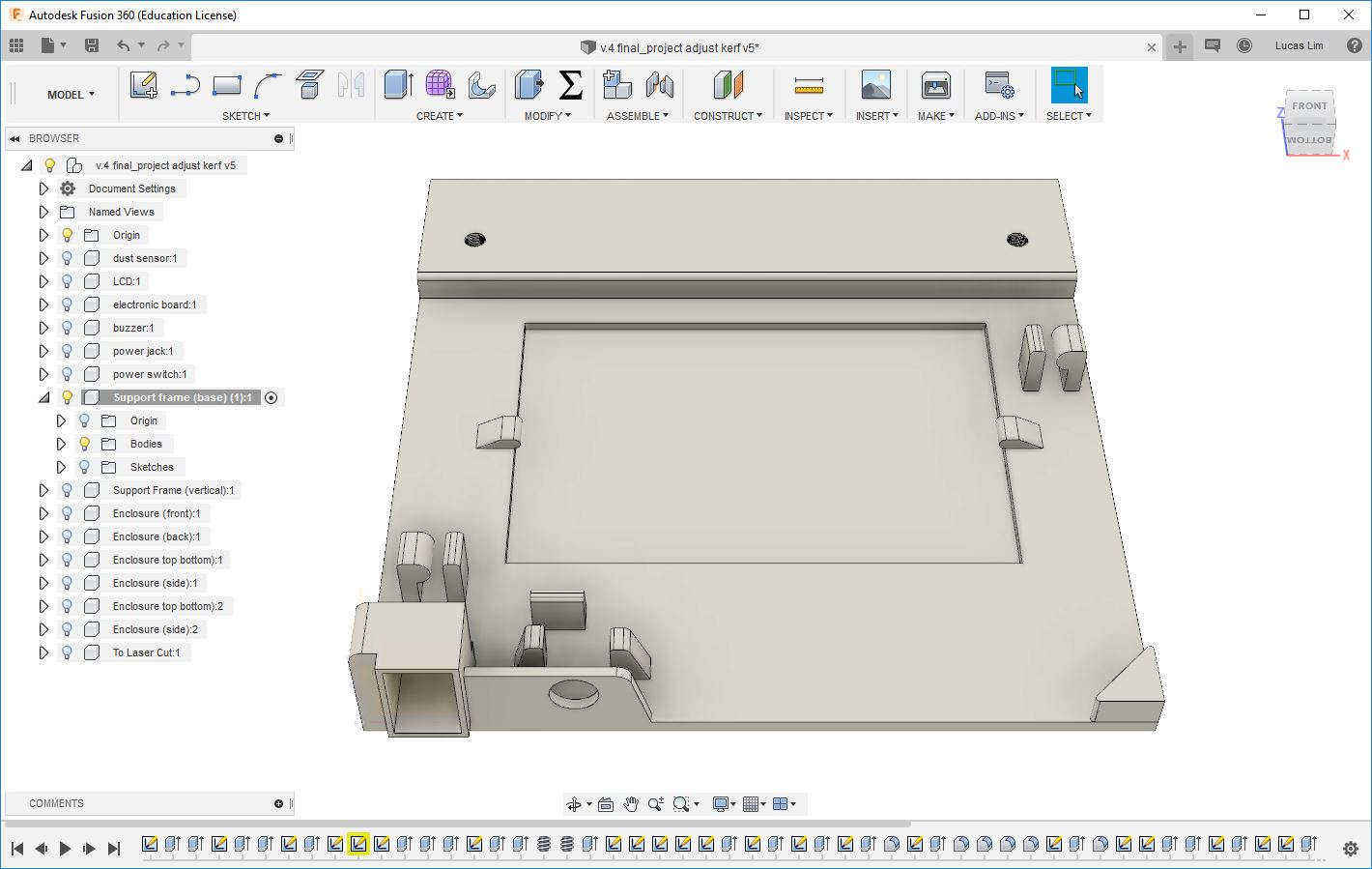My design of the enclosure box and support frame using Autodesk Fusion 360