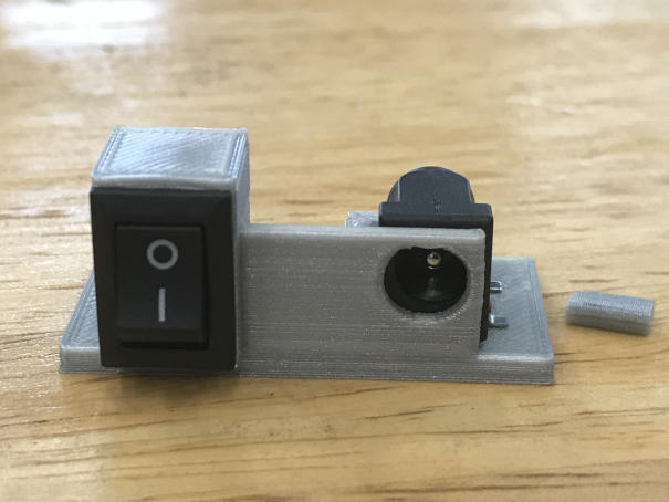 Support frame 3D Print To hold the internal components like LCD display module, dust sensor module, power switch, power jack and buzzer in place. This will be 3D printed. Since it is 3D printed, I try to use less material as possible in my design but ensuring it will be rigid and strong.