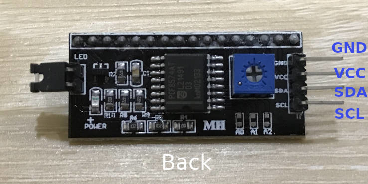 Then I soldered the I2C adaptor and the LCD display module together and used . My completed LCD display module (with the I2C interface)