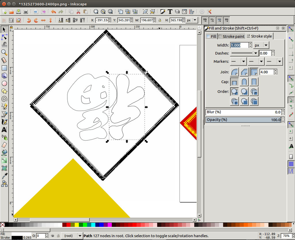 4. Then I refine the edges of the chinese "Fú" character by adjusting the fill and stroke to make it thicker.