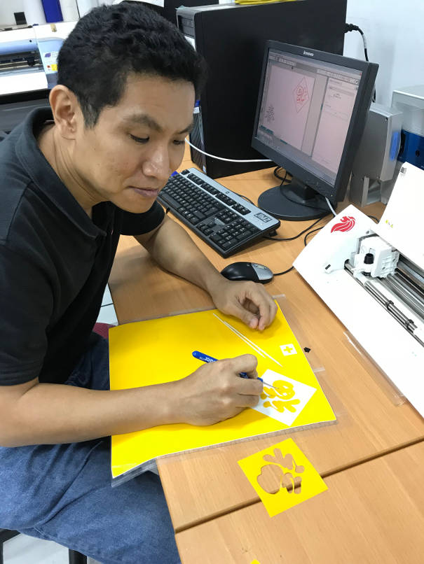 5. Once testing is ok, I changed the vinyl sheet to yellow color (as our Fab Lab only have yellow colour at that moment) and send my artwork for cutting.
