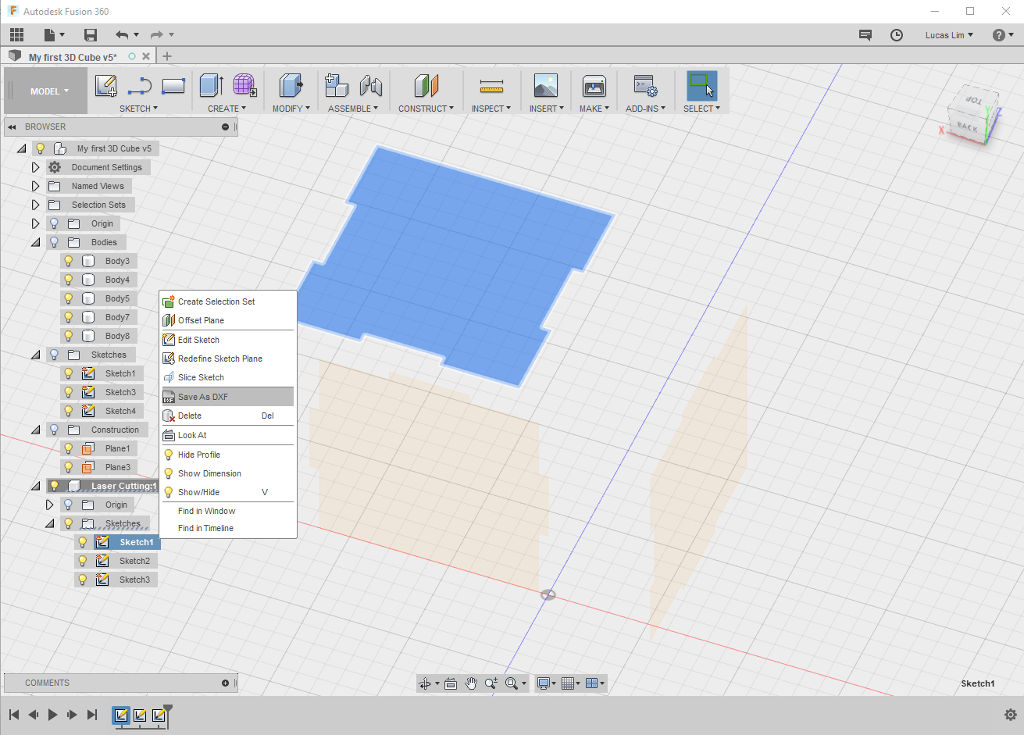 The goal of the tutorial is to familiar with using Fusion 360, how to set the parametric setting in Fusion 360 and create a box of each side to be 60mm to 60mm made of either plywood (thickness of 2.5mm) or acrylic (thickness of 3mm).