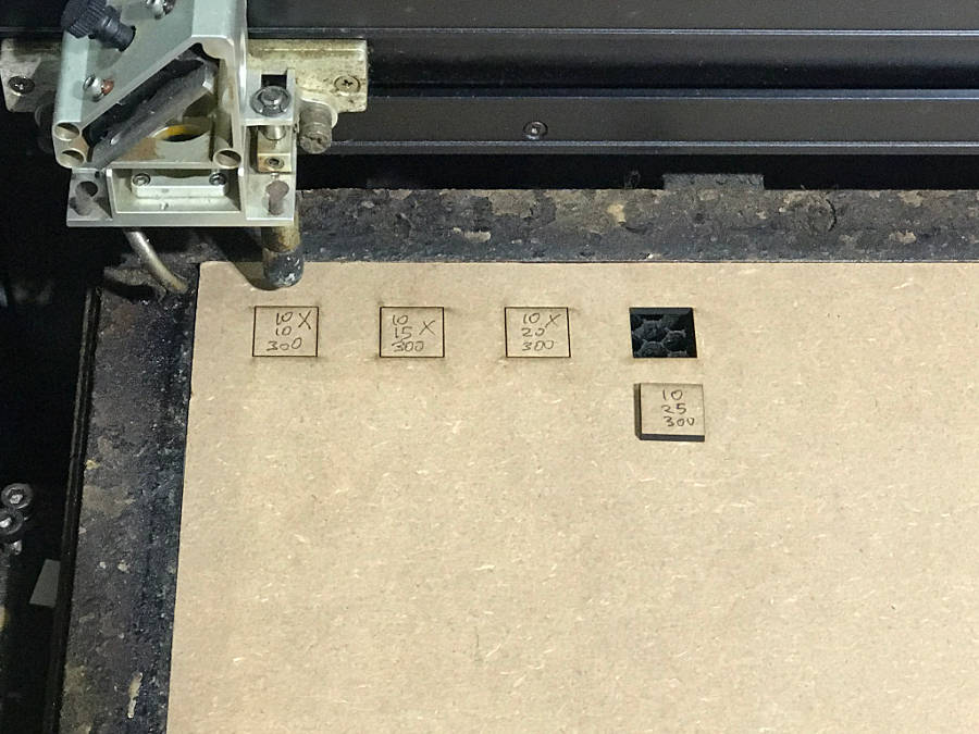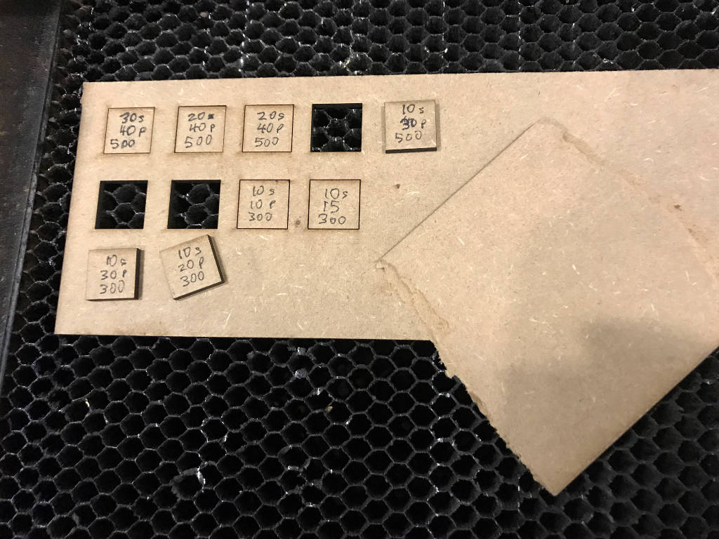 3. Finding the characteristics of the laser cutter and the MDF hardboard material