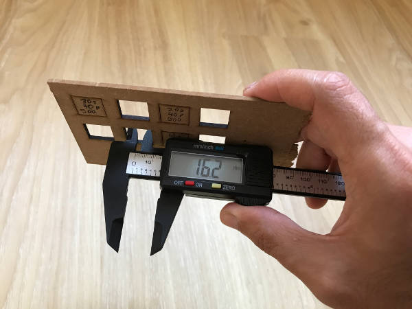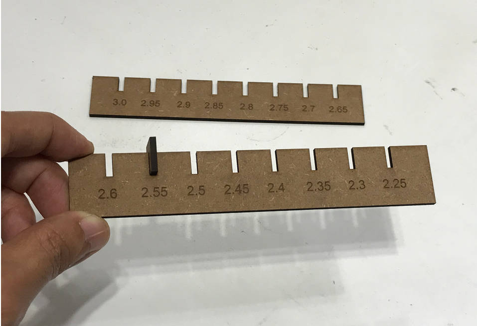 The first slot starts from 3mm width (which is the thickness of the cardboard material) and slowly reduce by 0.05mm with each subsequent slot. After which, I used a same piece of the same material to slot into each slot until I find my ideal "tight fit".