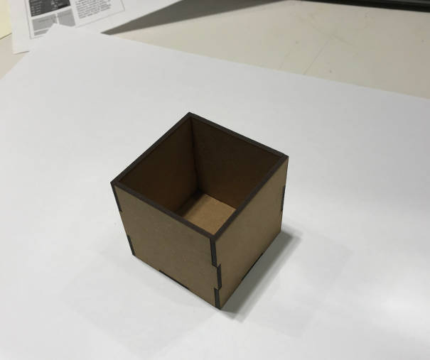 Based on the speed and power recommendation guide provided by Epilog and earlier laser cut for the 3D pressfit box using the same MDF hardboard material (2.5mm thk). I started doing some tests to look for the ideal cut setting to use for the 3mm thk MDF hardboard. I drawn the test boxes using Fusion 360.
