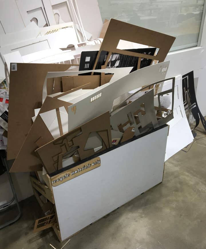 I used part of the recycled material left-over by previous students to cut out "test" boxes to determine the "kref". The amount of material needed is quite small for the test boxes.