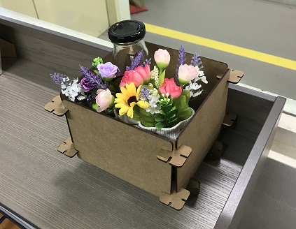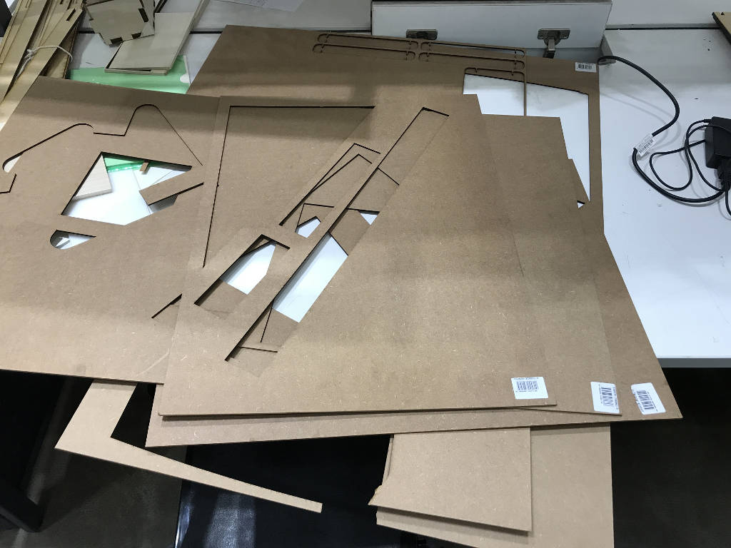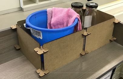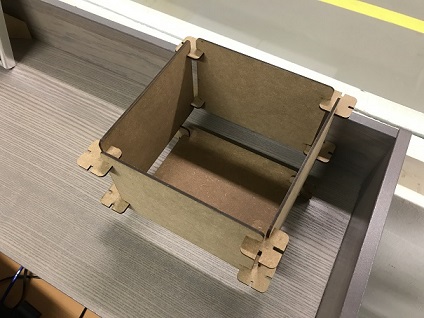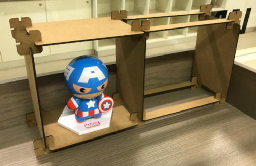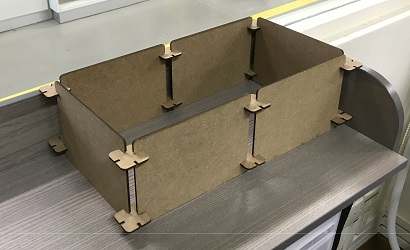 The material used was 3mm think medium-density fibreboard (MDF) hardboard left behind by the students in the recycled bin in the Fab Lab after their cutting. I choose the 3mm thk MDF hardboard over the 2.5mm thk white-colourcardbaord, as it is visually appealling and strong enough to support the light-weighted teddy bears. The 3mm thick MDF hardboad is thicker than the 2.5mm one that I used for my 3D box earlier.