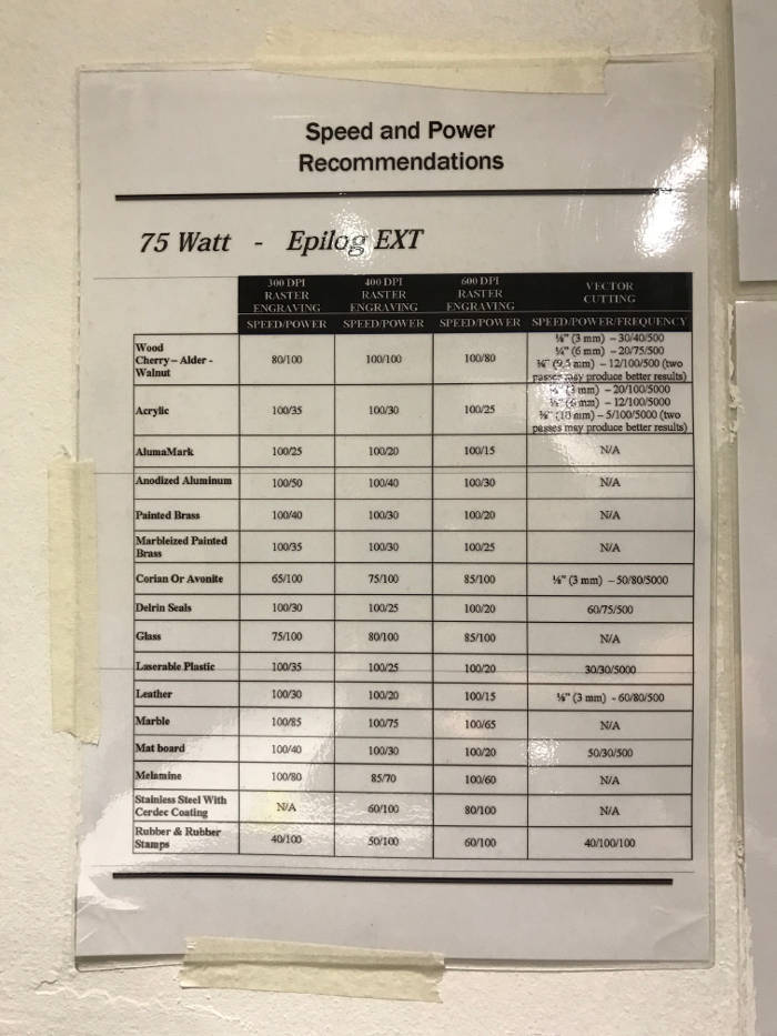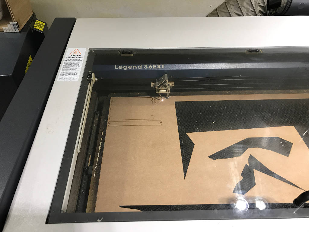 The laser cutter used is 'Epilog Legeng 36Ext', a 75watt laser cutter.