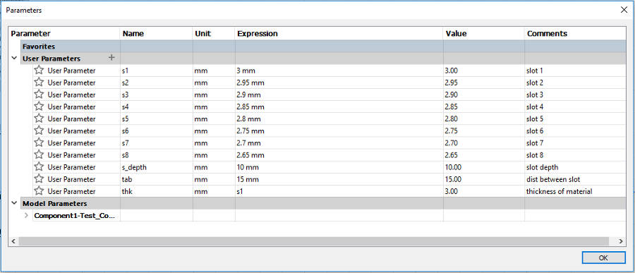 Parametic model of the test comb make it so easy for me to adjust the slot-width again :