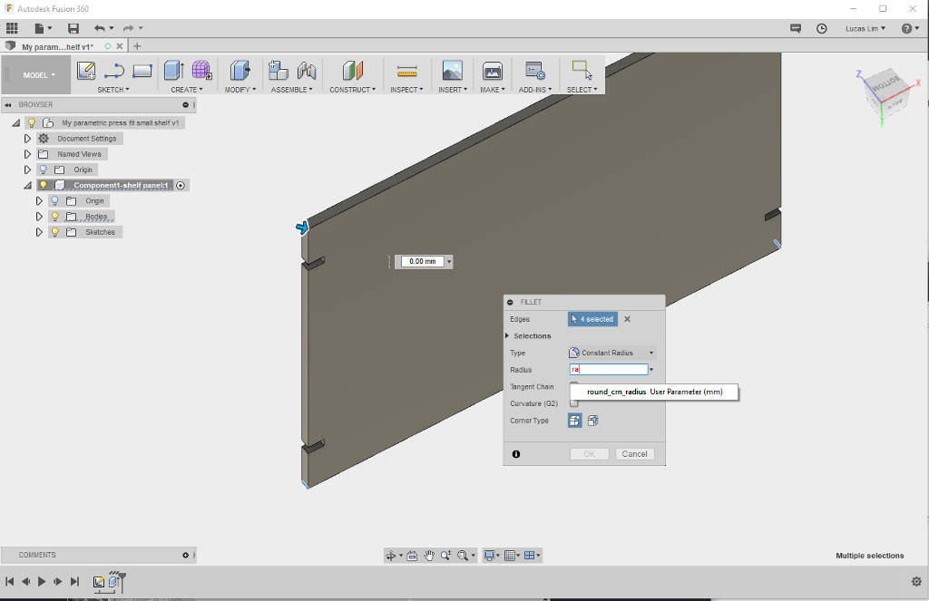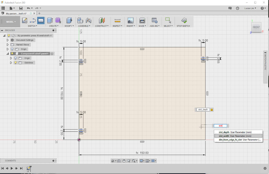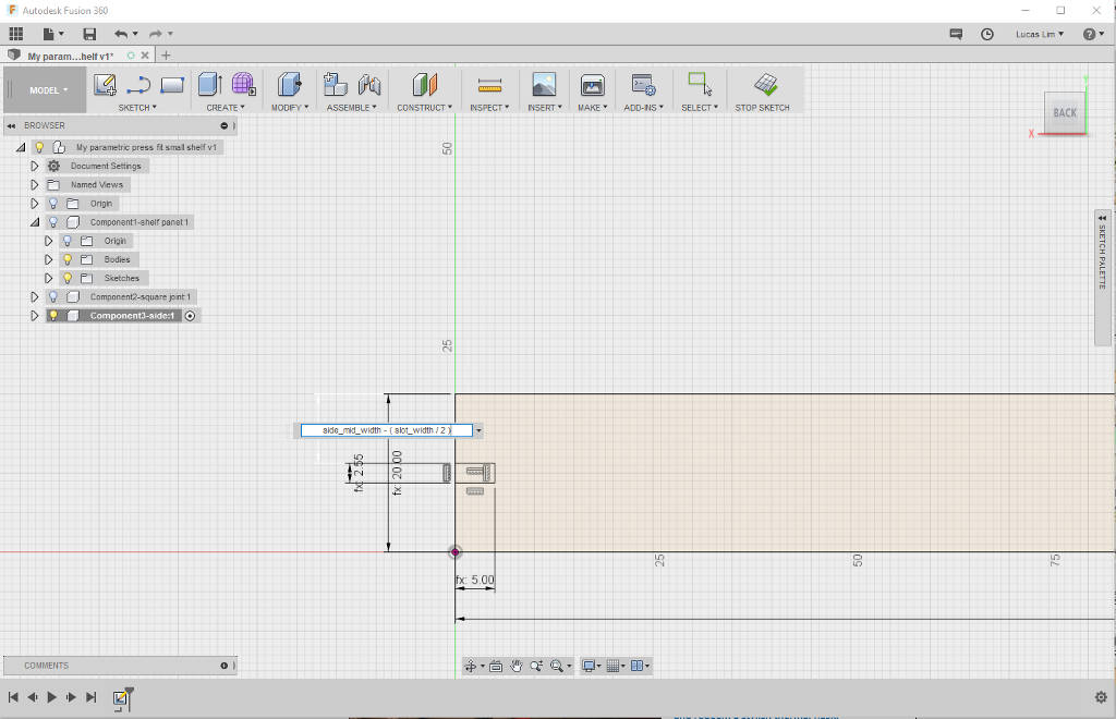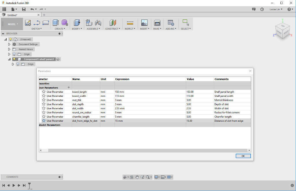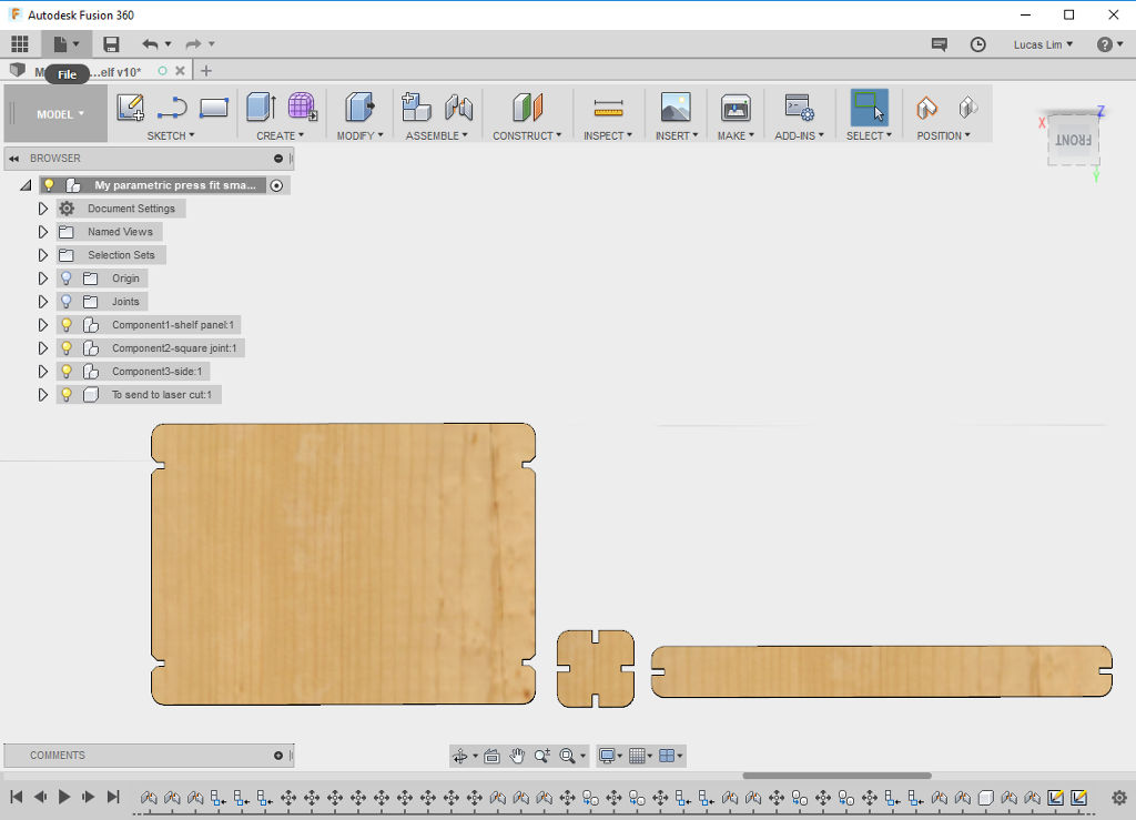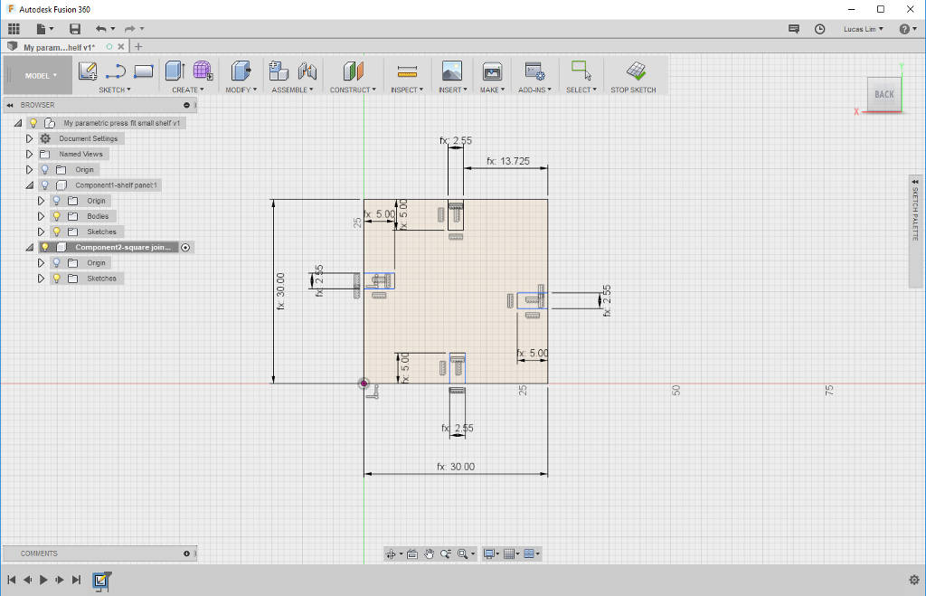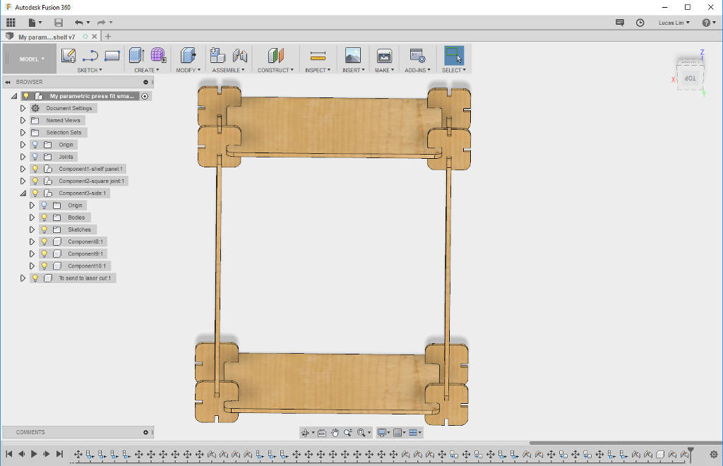 I used Fusion 360 to draw out my design for the parametric press-fit small shelfing unit.