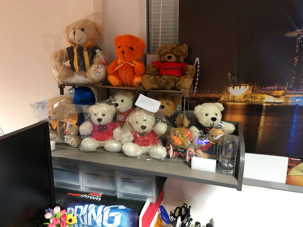I looked around my office for ideas, as I wanted to make something useful. So I decided to make a small shelving unit for my soft toys. I have many of these teddy bears as they are given to me as part of the Singapore Polytechnic Service Excellence Awards; one teddy bear for each quarter of the year.