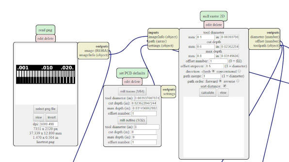 9. Click "Calculate" on "mil raster 2D" and save the gcode (.nc file) to a usb drive to be use for etching on the StepCarft 420 PCB machine