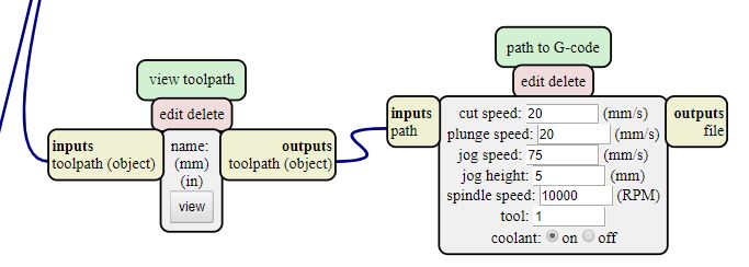 8. Connect the path of "Path to G-code" with "File Save"