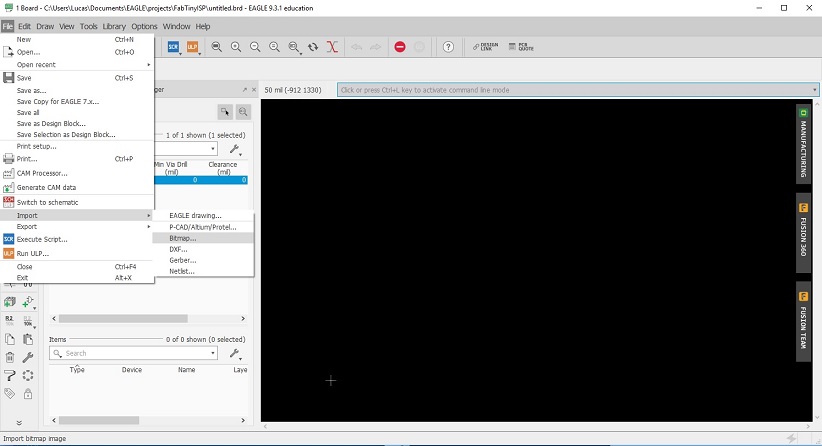 12. Save the board deisgn. The default path for EAGLE is "{username}\Documents\eagle\projects\"