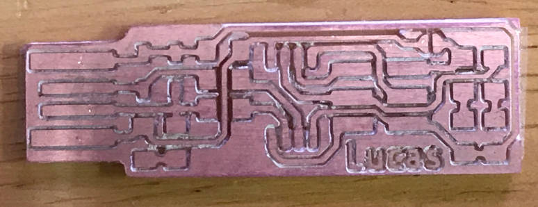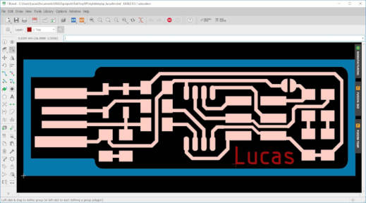 10. I imported the outline and added the text "Lucas" to my FabTinyISP board using EAGLE Text tool.