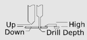 Drill Depth : -1.5 (Depth to drill/cut through the pcb board. (Thickness of my FR1 pcb board is 1.5mm thk)