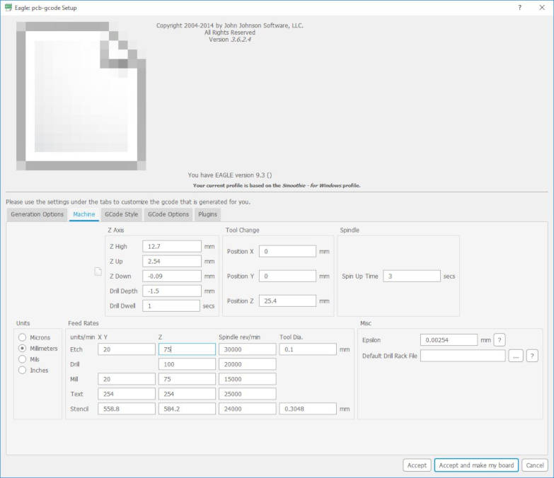 Some of the Machine Setting of pcb-gcode ulp: